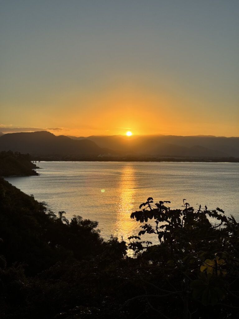 Ao entardecer, o céu se transforma em tons dourados e o sol se despede no horizonte, encerrando o dia com beleza e contemplação. Um privilégio raro, vivido todos os dias, que transforma cada estadia em uma experiência memorável.